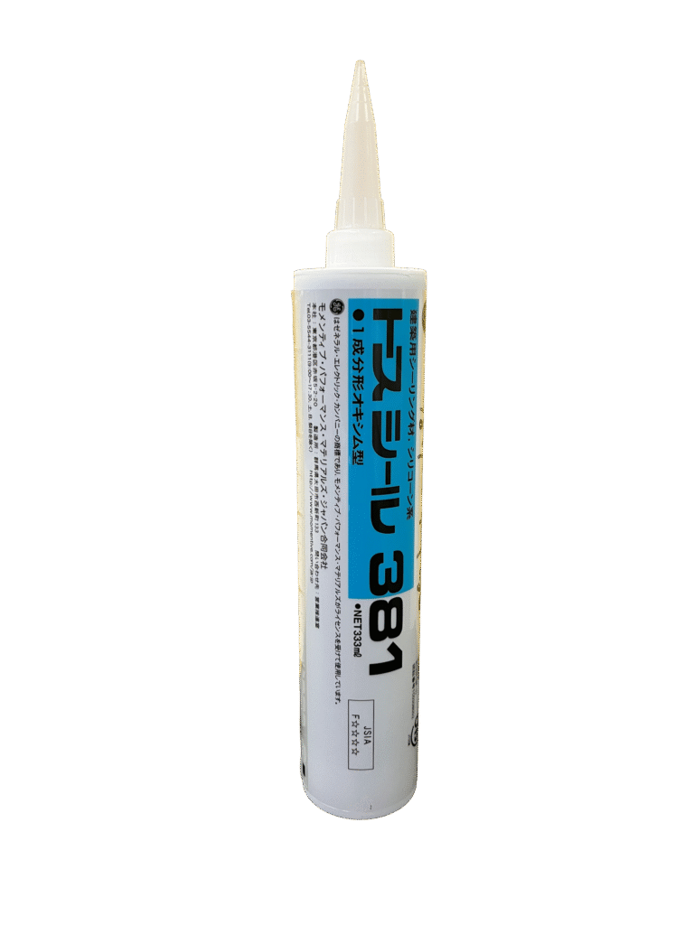 モメンティブ製「トスシール381」は、1成分脱オキシム型の建築用シリコーンシーリング材です。空気中の湿気により硬化するシーリング材ですが、硬化時に酢酸を放出しないので、金属などへの腐食の心配がほとんどありません。硬化後は一般のシリコーンゴムと同様に耐候性、耐久性に優れており、さらにシーリング材として良好な施工性、接着性がありますので、ガラス工事はもちろん、建築用に広くご使用いただけます。
