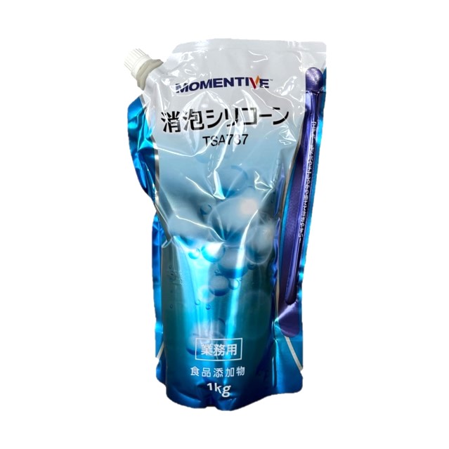 モメンティブ製「TSA737」は、エマルジョン型の食品添加用シリコーン消泡剤で、食品衛生法による食品添加物の「シリコーン樹脂」の規格基準に適合したものです。食品工業における水系発泡液に対して優れた速効性の消泡効果を示します。