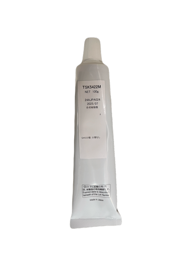 モメンティブ製「TSK5422L」は、シリコーンオイルを基油とし金属セッケンを配合した潤滑用グリースです。石油系グリースに比べ使用温度範囲が-30~200°Cまでと広く、特に高温での潤滑性に優れています。また、各種プラスチックに接触してもほとんど影響がありません。